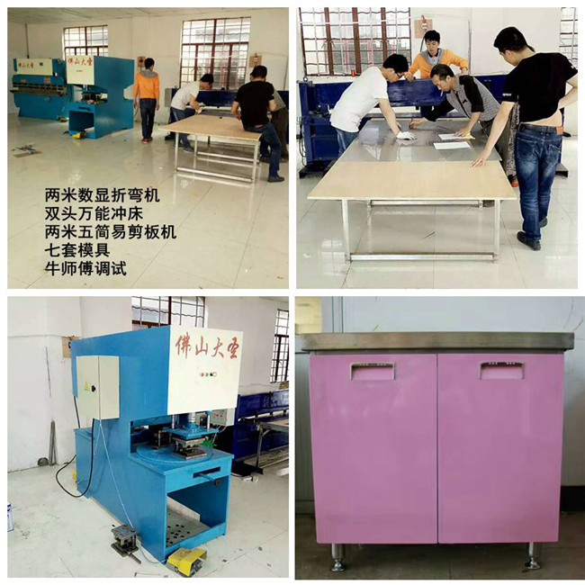 佛山市鵬碩機電設備有限公司 ,深圳市寶安區大圣不銹鋼櫥柜設備廠,河南晨鵬實業有限公司,河南省中拓實業有限公司,是一家集研發、加工、銷售不銹鋼制品加工設備為一體的,綜合性股份企業,為方便用戶培訓和考察,本公司在廣東佛山,河南鄭州,北京大興都設有產品和設備展廳,不銹鋼櫥柜培訓基地,各種鋼板配件原材料都有,到培訓基地考察參觀,可先參觀展廳產品,各種機械設備,感覺哪里不好做,讓師傅現場免費教會你工藝,和師傅核算成本,都看明白再考慮合作,本公司研發的不銹鋼制品加工系列機器, 剪板,折彎,沖孔,全部模具靠山定位 ,操作方便,外行可快速學會。還有自動不銹鋼櫥柜制作機器,大圣專用金屬板材拆單軟件,激光切割機,電液伺服數控折彎機,自動上下料機械臂,大圣柔式折彎中心等。設置好機器自動工作。設備占地面積小,加工產品精密美觀,可批量制作不銹鋼廚柜,浴柜,衣柜,鞋柜,不銹鋼防盜門,鋼木門,不銹鋼家具,金屬工藝品等,投資不多,產品精美,技術員免費上門培訓。購買大圣不銹鋼設備,做不銹鋼櫥柜,別說您這輩子發不了財!